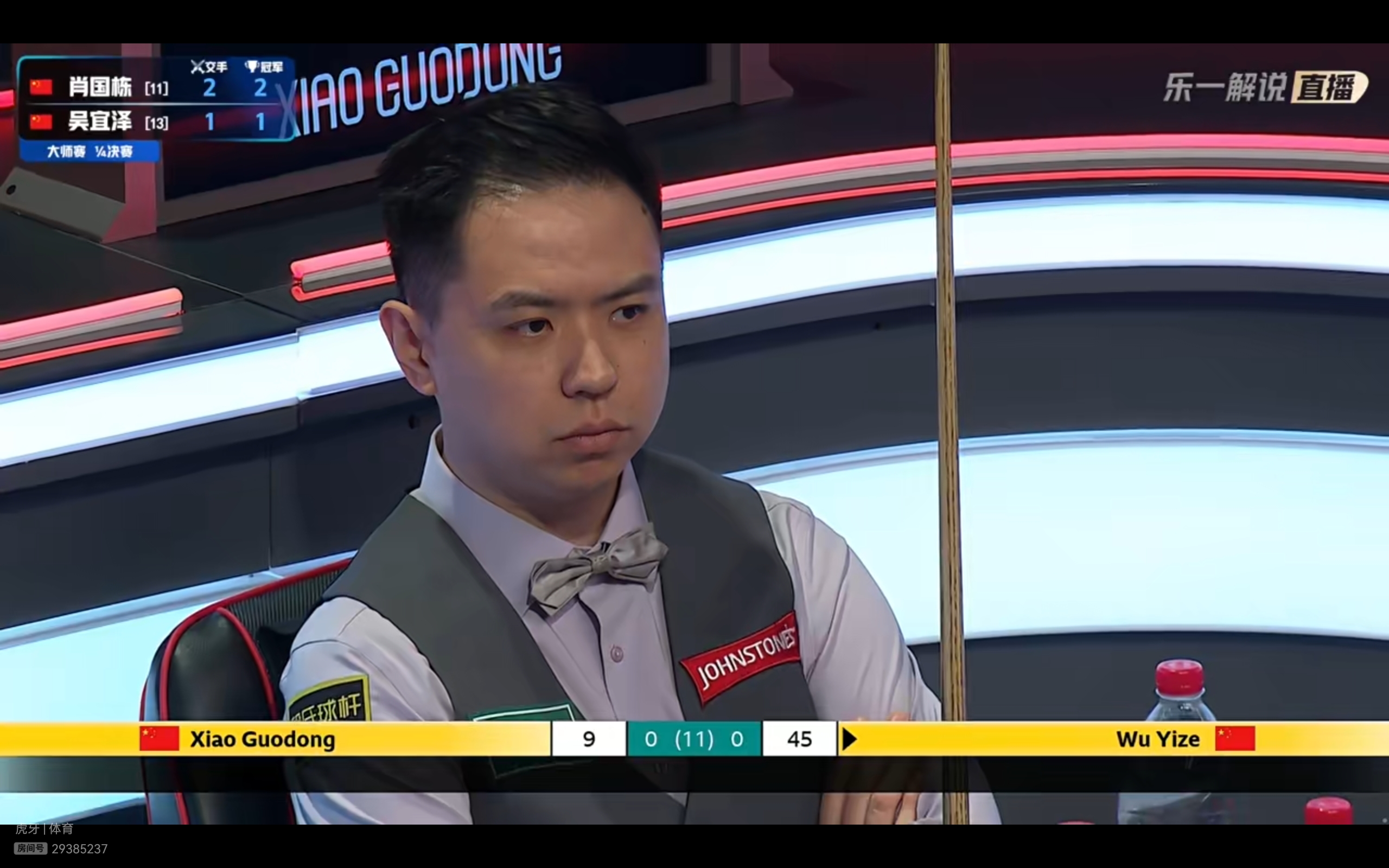 The Snooker Masters quarterfinal match between Wu Yize and Xiao Guodong is live on CCTV Video and Huya platforms.