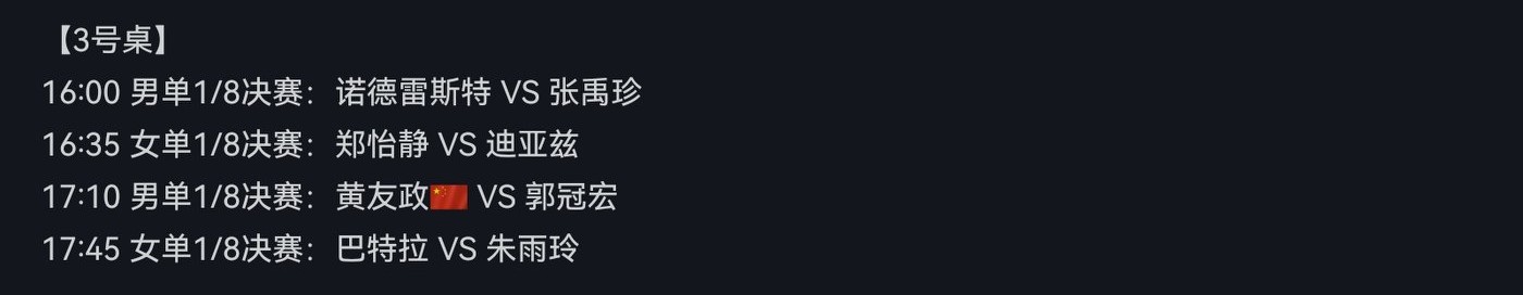 At Table 3, Huang Youzheng will play one match. Unless something unexpected happens, Guo Guanhong is expected to lose, and Huang Youzheng should win and move forward.