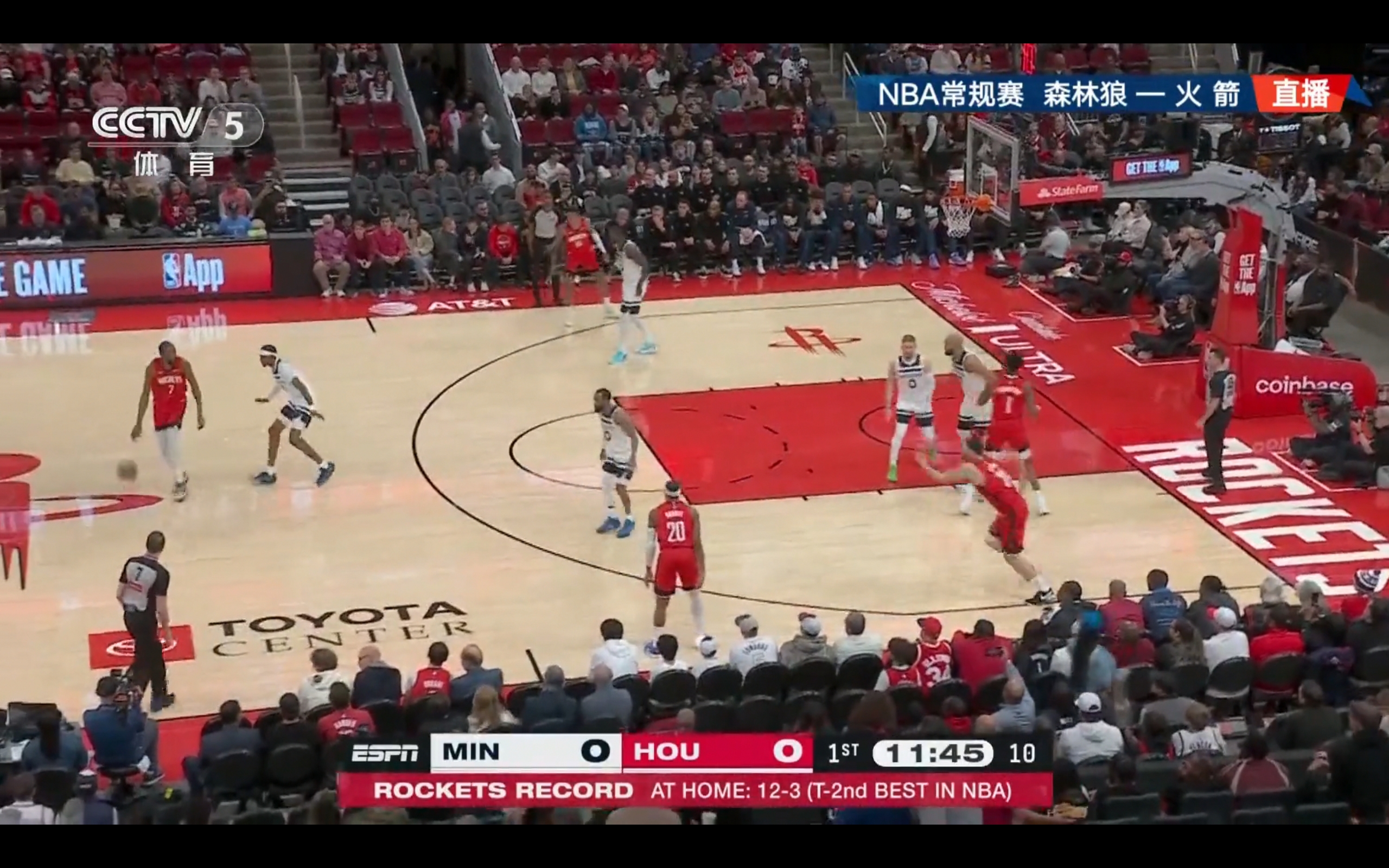 CCTV-5 is currently airing the NBA game between the Timberwolves and the Rockets.