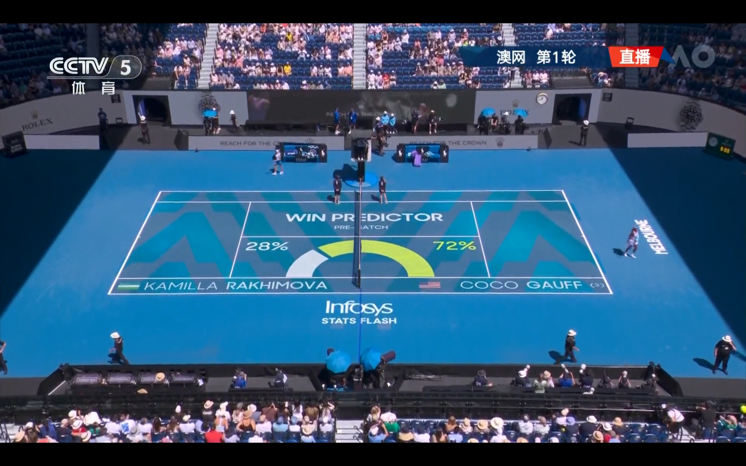 Who will win this match and move on to the next round? The answer is clear: Gauff. Below is the official Australian Open projection of their chances to advance, showing Gauff with a 72% probability, far higher than Rashimova's 28%. So, let's enjoy Gauff’s performance. After all, she is ranked third in the world and is the third seed in this tournament. What do you think?
