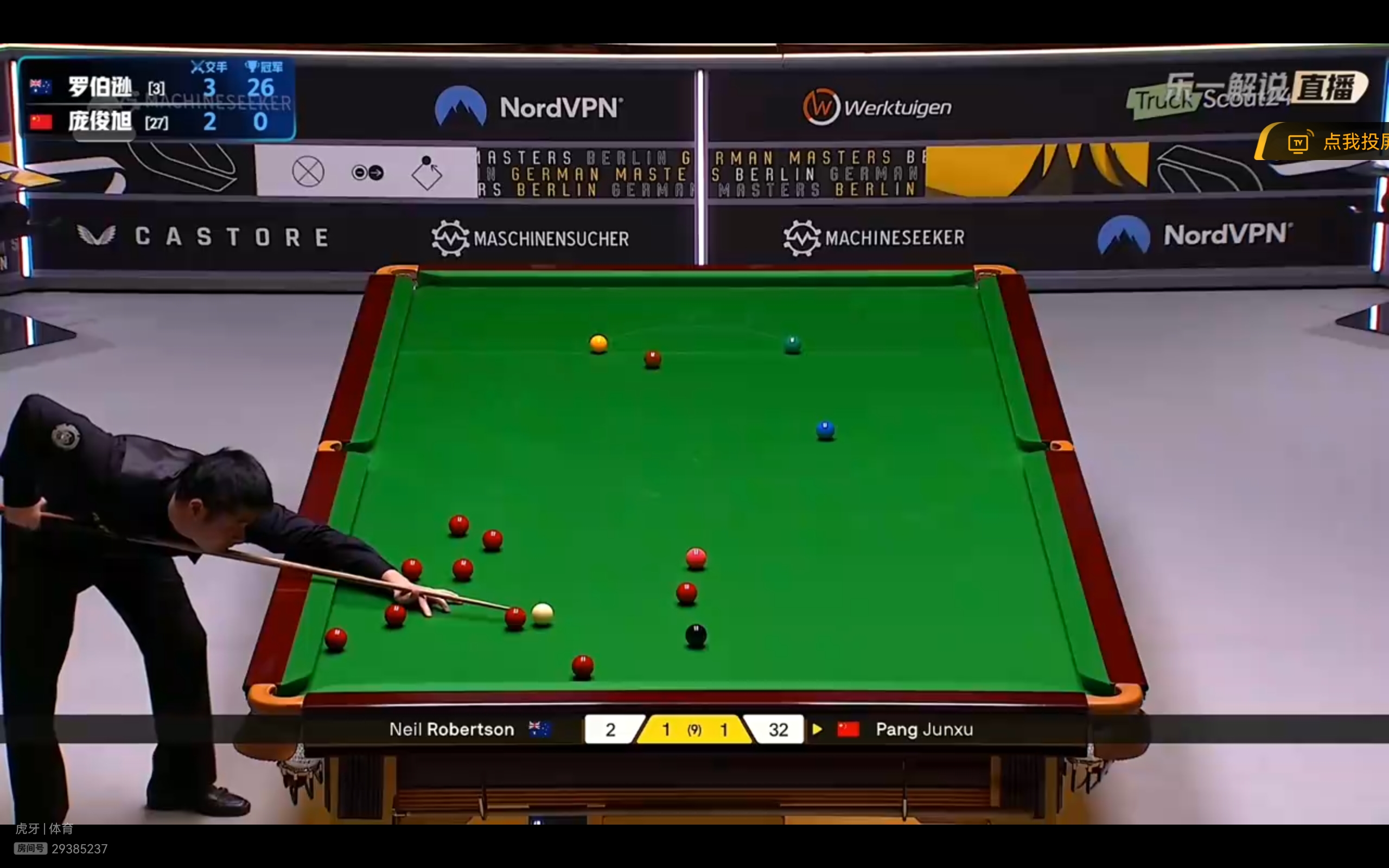 The live match between Pang Junxu and Neil Robertson is currently tied at 1-1. Their head-to-head record is 2-3 in favor of Robertson, indicating Pang is not afraid of him. I’m hoping Pang can beat Robertson; do you have confidence in that?