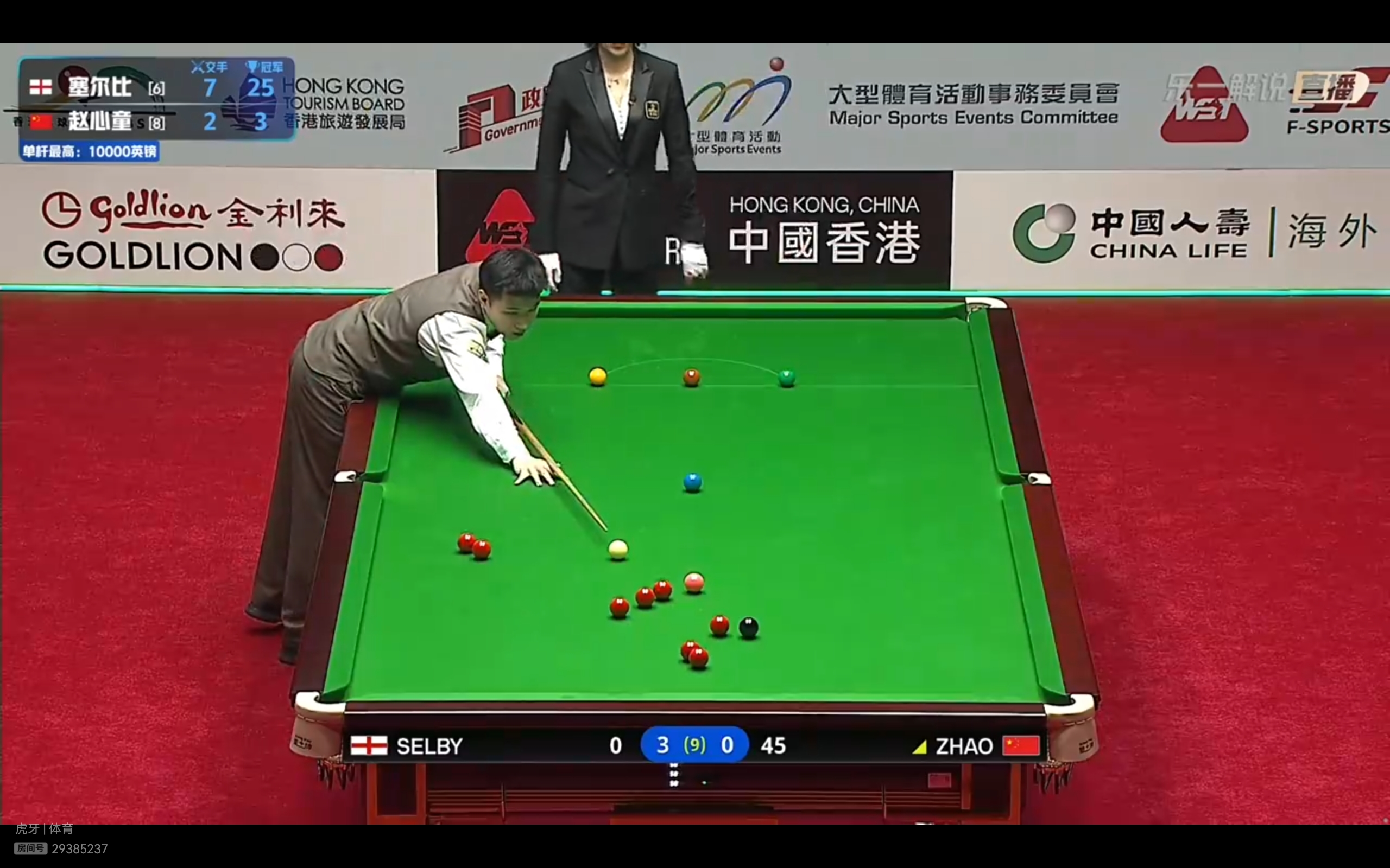 This match is played as a best-of-nine frames, and at present, Zhao Xintong trails 0-3 in the overall score. They are in the fourth frame, with Zhao leading 45-0 in the current points.