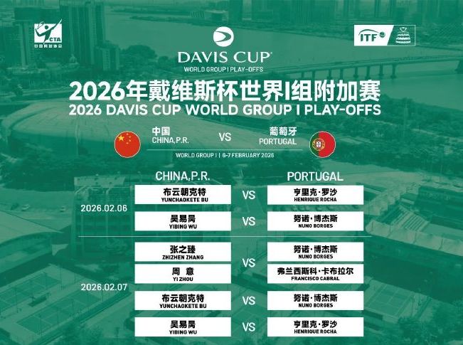 Let's turn to other news. Today at noon Beijing time, the Davis Cup World Group Playoffs will be held at the Nansha International Tennis Center in China. The Chinese team faces Portugal at 12 PM. Playing at home with their top lineup, China will strive hard for victory.
