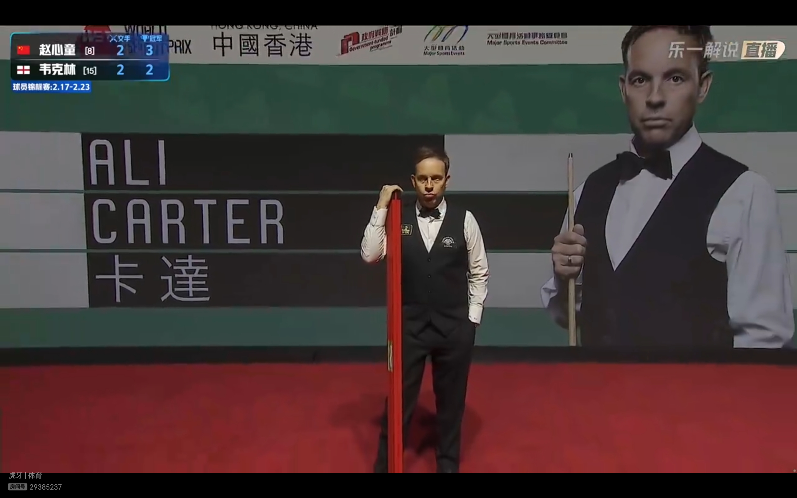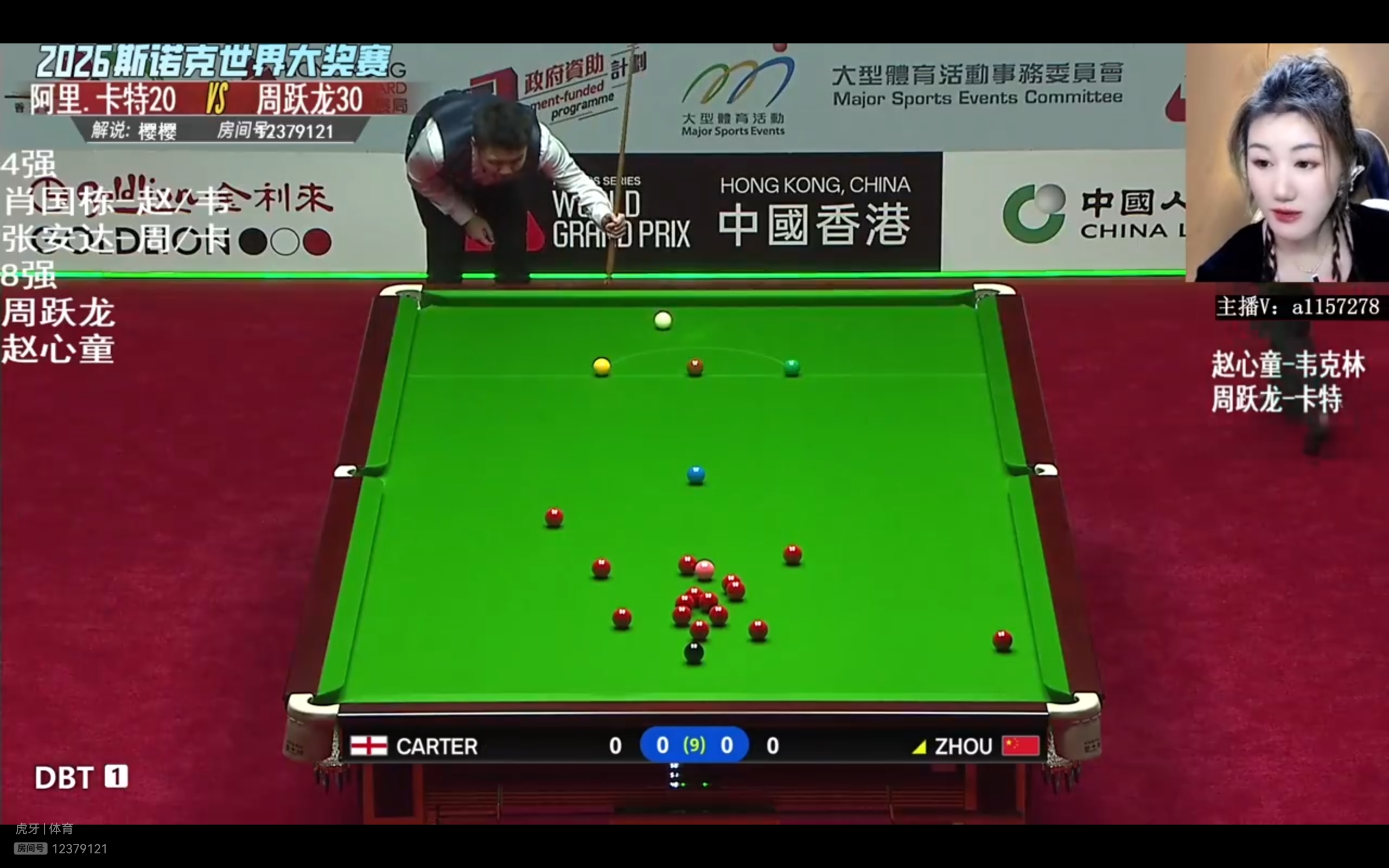 The Huya platform is offering free live coverage of the Snooker World Grand Prix quarter-final match between Zhou Yuelong and Ali Carter.