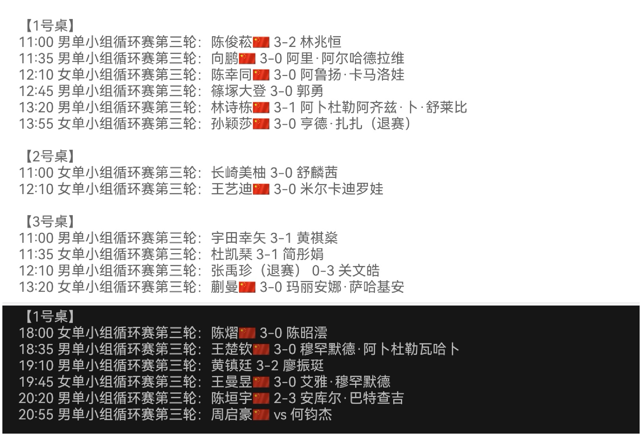 The only loss today was by Chen Yuanyu, who often loses matches and might end up, like Lin Gaoyuan, returning to the provincial team, meaning he may not represent China in future competitions!