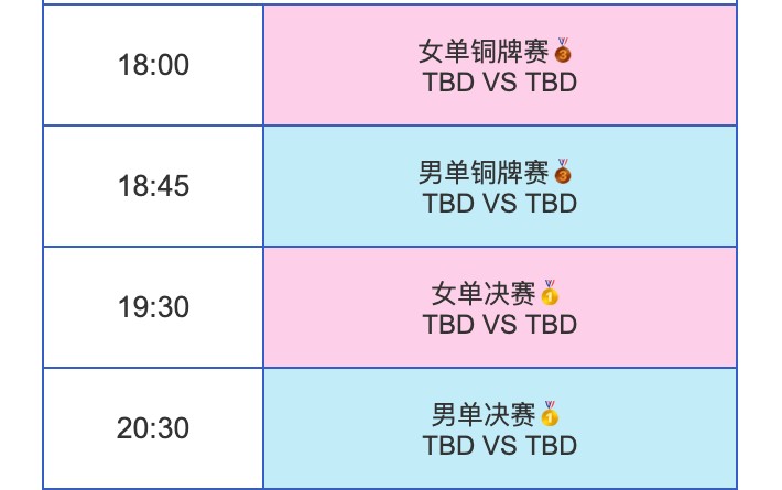 Next, the evening session tomorrow will hold the gold medal and bronze medal matches, details are shown in the image below.