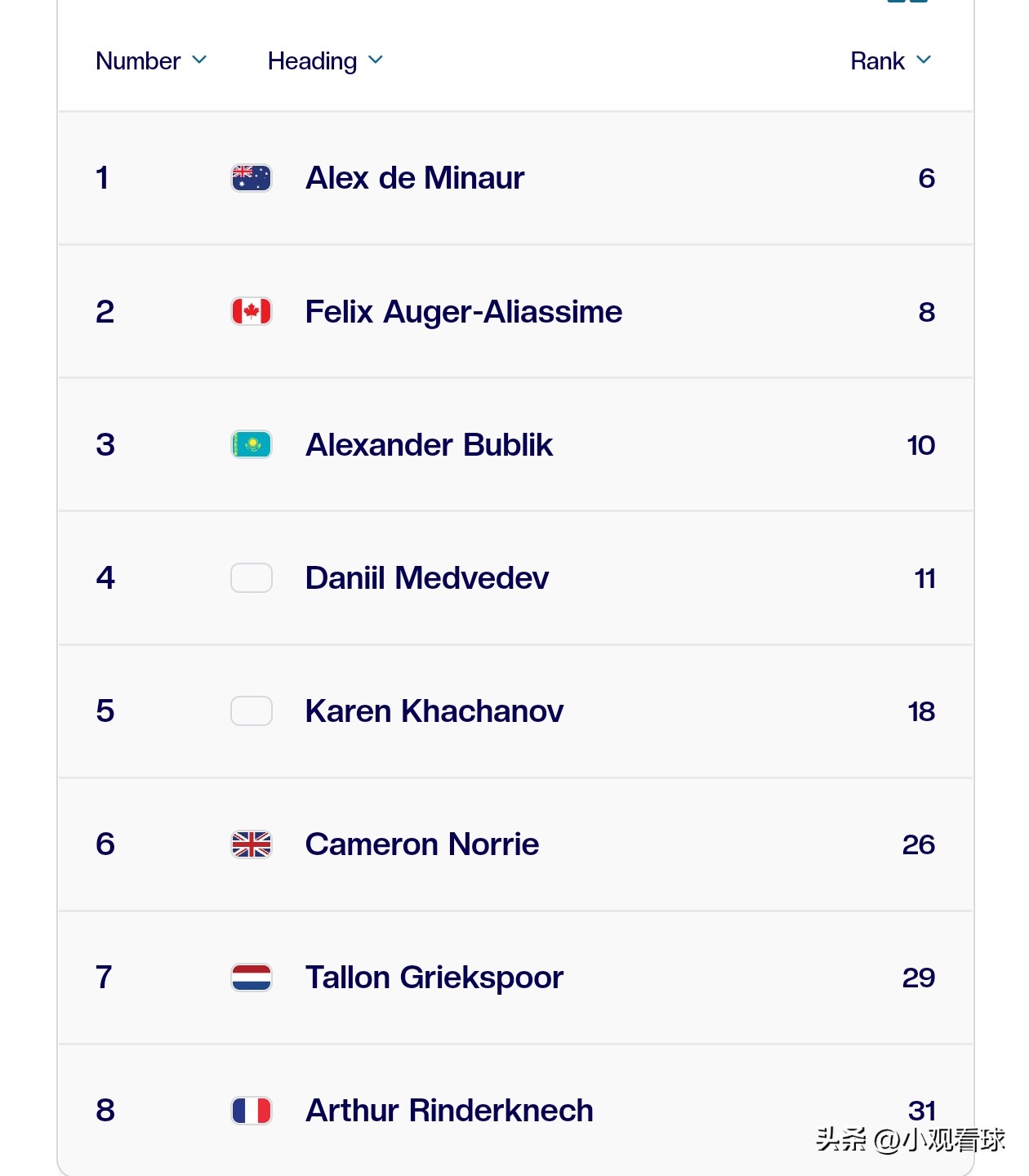 Seeds 5 to 8 are: Karen Khachanov, Cameron Norrie, Tallon Griekspoor, and Arthur Lindgren.