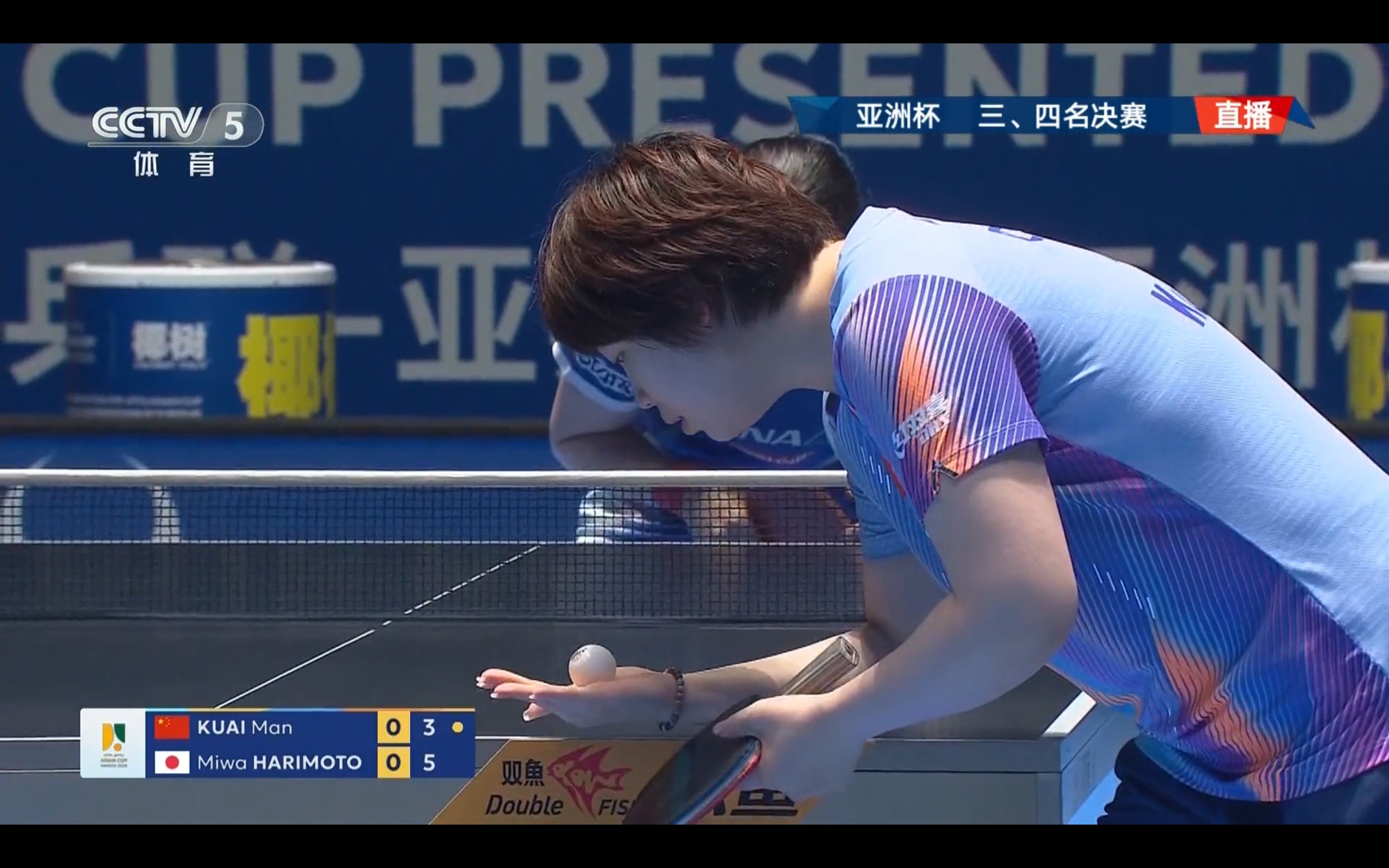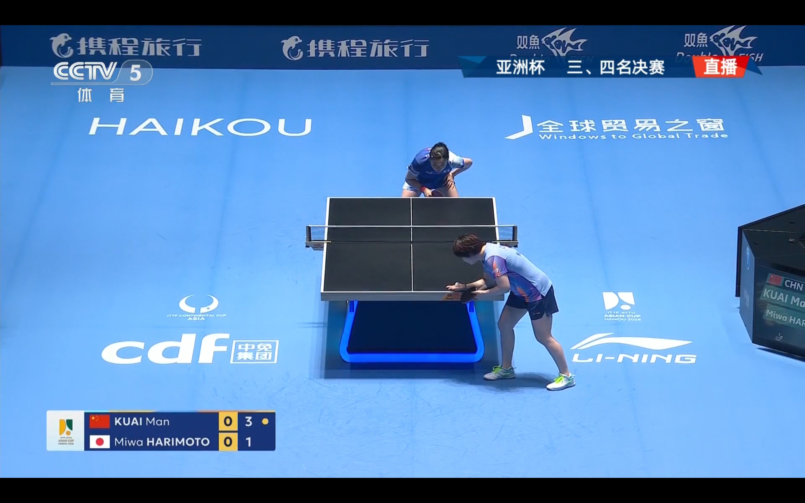 CCTV-5 and Yangshipin are broadcasting the live Table Tennis Asia Cup bronze medal match between Kuai Man and Mima Ito.