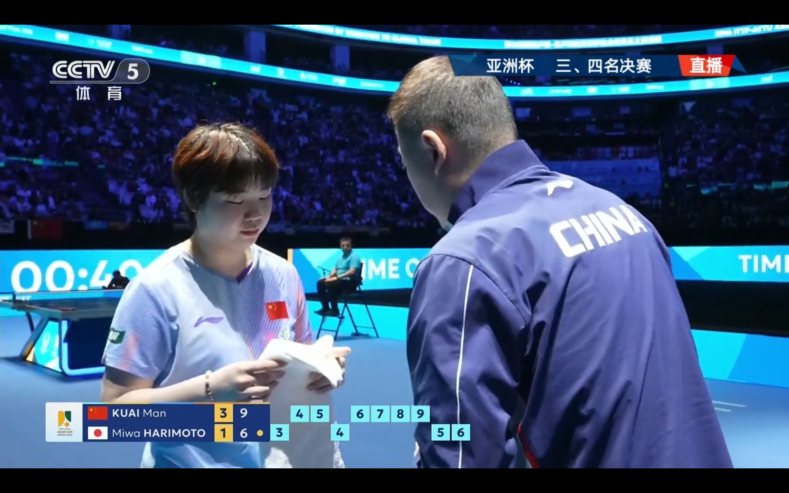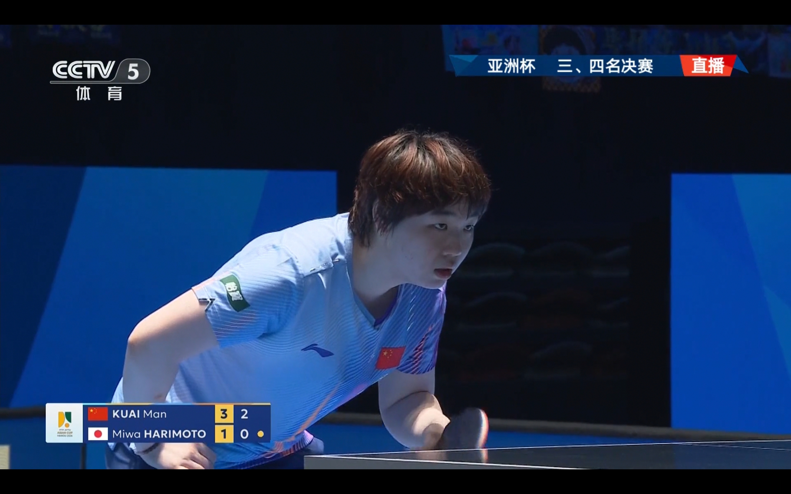 Mima Ito won the opening game, but Kuai Man rallied to win the following four games in a row, beating Ito 4-1 and earning the Asian Cup bronze medal.