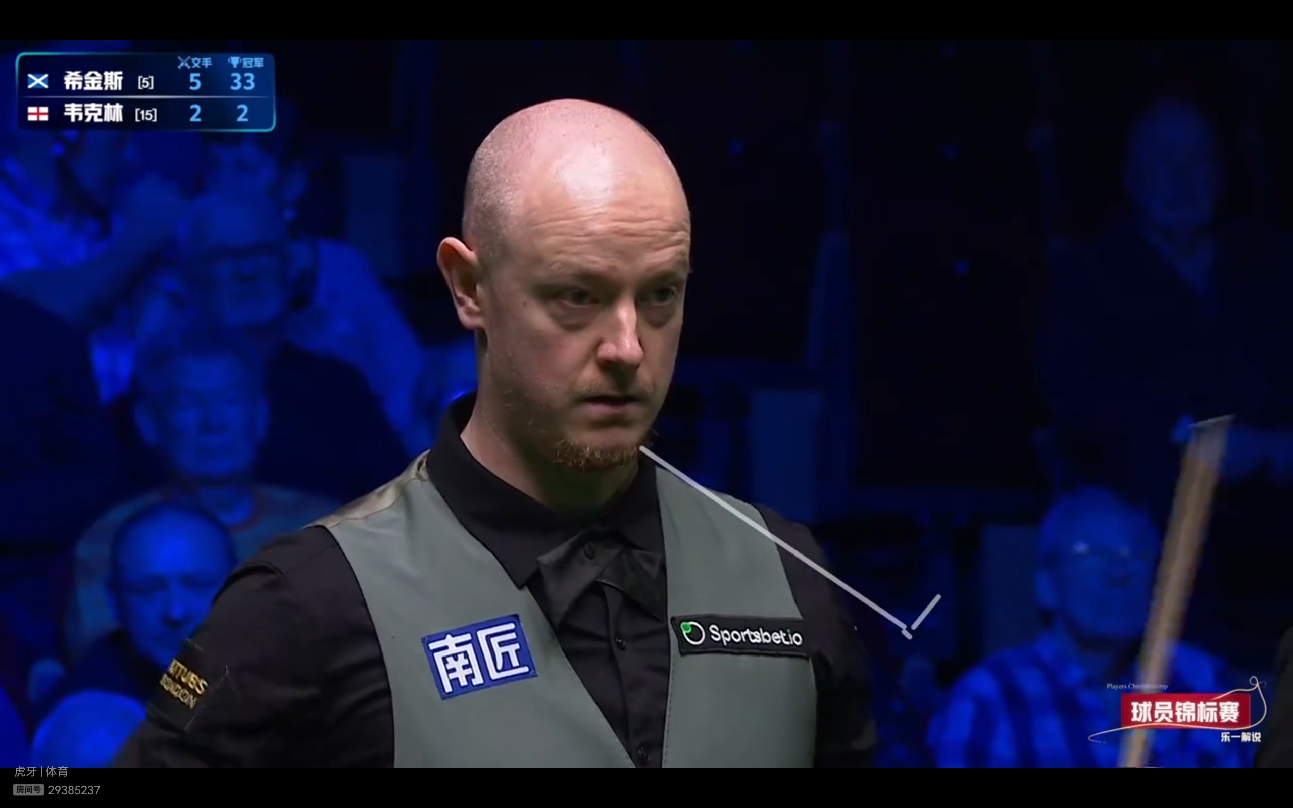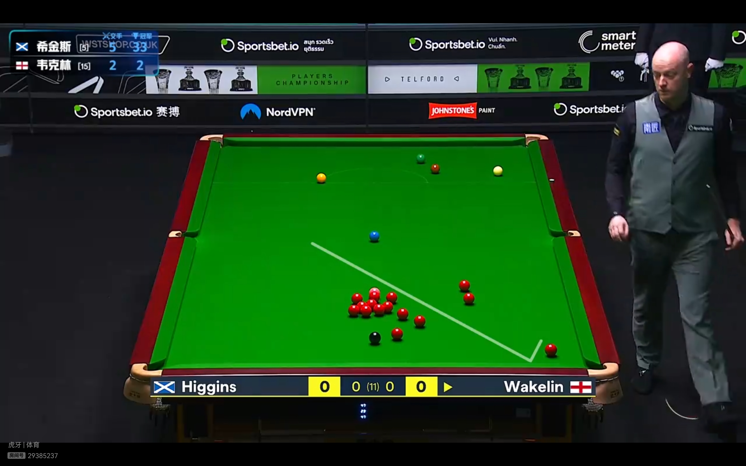 Migu Video and Huya platforms are live streaming the Snooker Players Championship quarterfinal match between Higgins and Wakelin.
