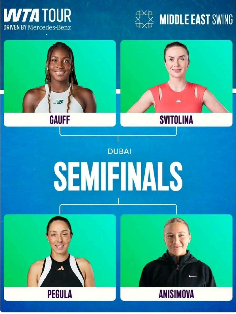 My personal prediction: in the first semifinal, Pegula will likely beat Anisimova 2-0 or 2-1. Anisimova also lost to Pegula at the Australian Open. Tonight, the outcome will probably be the same! For the second semifinal, I expect Gauff to defeat Svitolina. I hope Gauff wins this time since she lost last time. This match must be a victory for her.