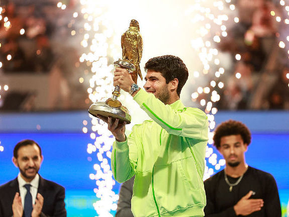 Let’s turn to other tournaments: last night Beijing time, the ATP 500 Qatar Doha event concluded spectacularly. In the singles final, top seed and world No.1 Alcaraz crushed French rising star Fils in just 50 minutes with a 6-2, 6-1 victory, extending his winning streak to 12 matches this year, capturing his second title of the season and the 26th of his career. This marks Alcaraz’s ninth ATP 500 title, leading among players born after 2000.
