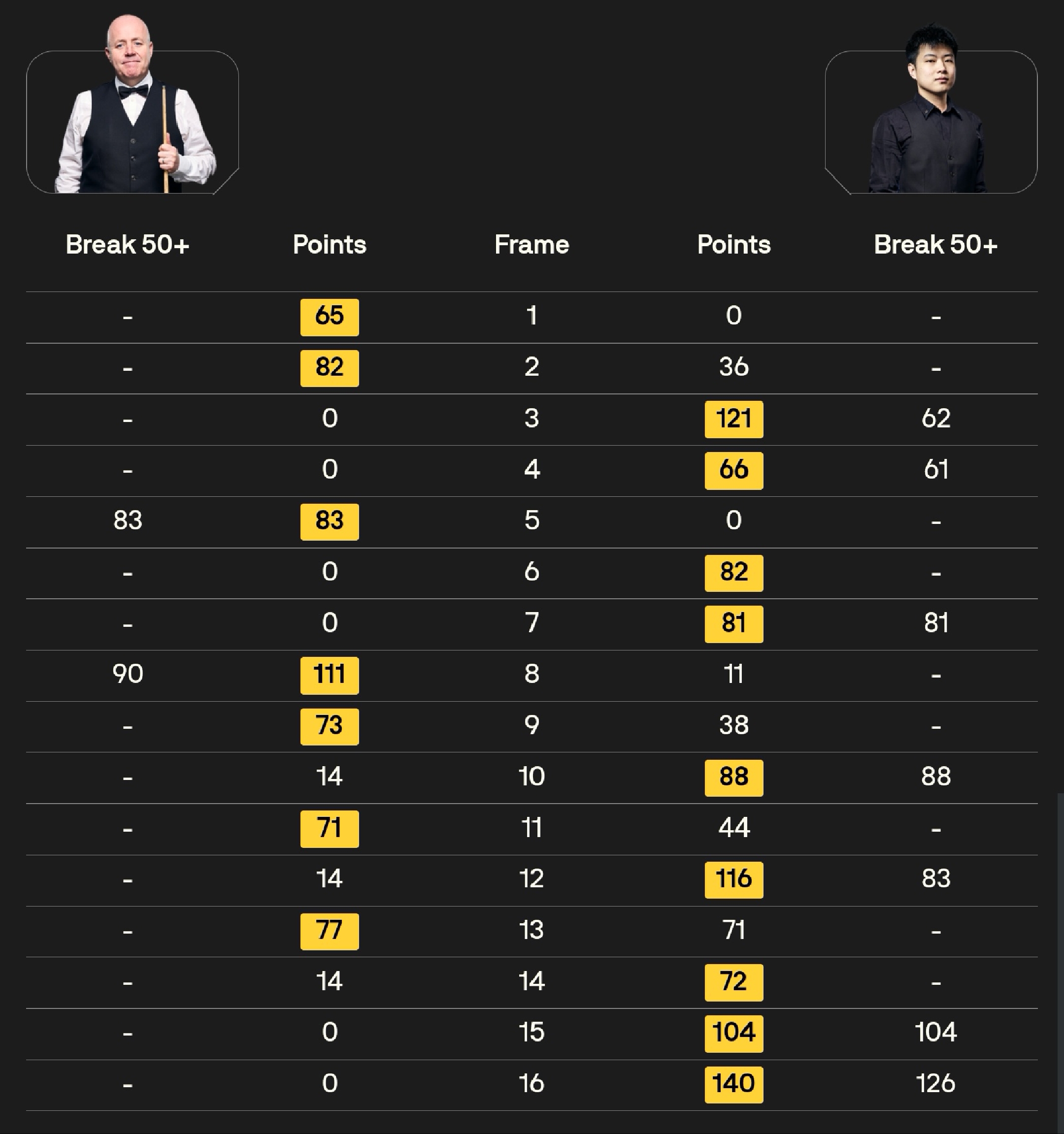 Looking at the match statistics, Zhao Xintong made two century breaks and five breaks over 50, while Higgins only managed two breaks over 50 and no centuries. This clearly shows Zhao’s superior offensive skills, making his victory well deserved.