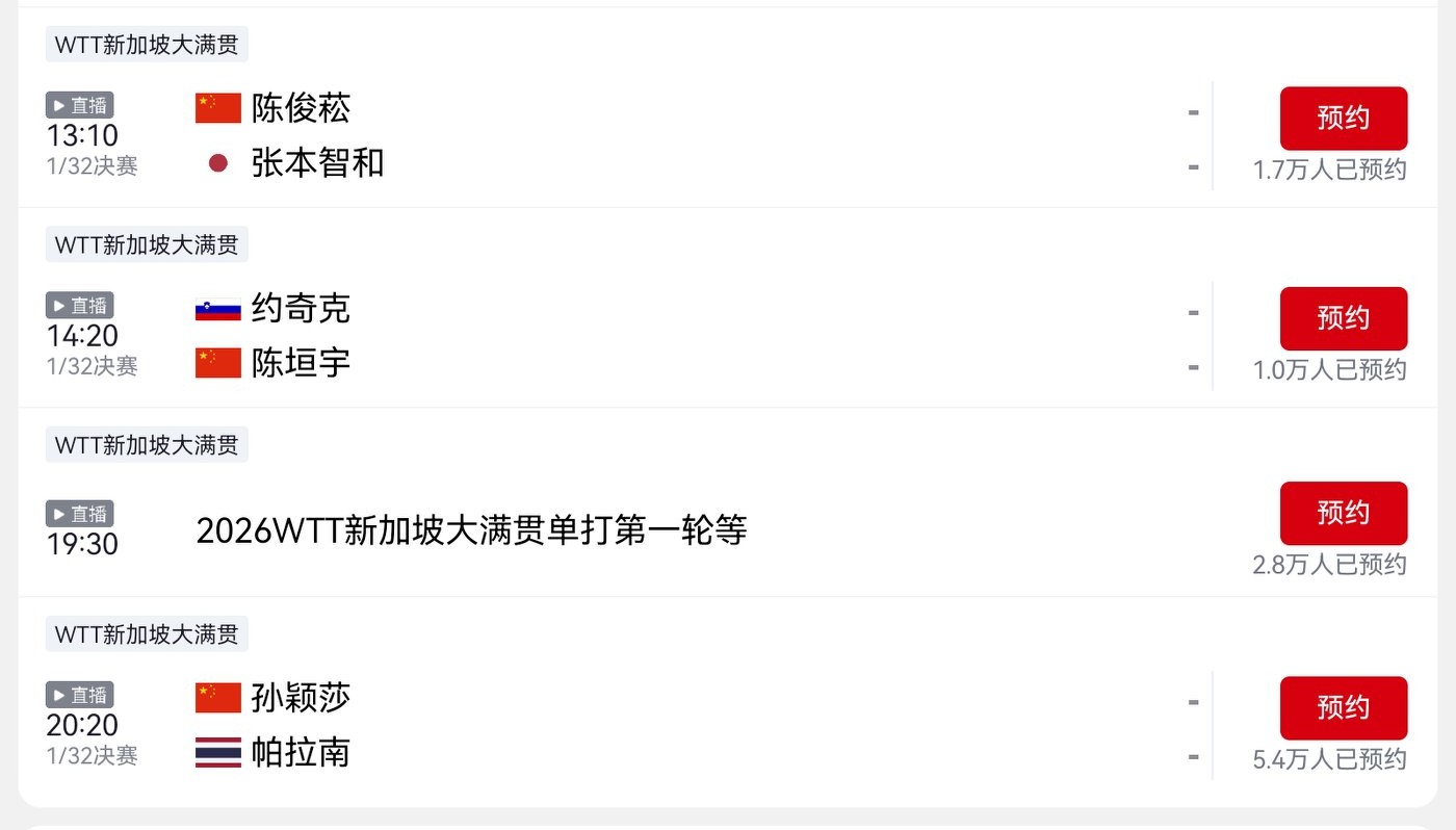 CCTV-5+ and Yangshipin are streaming the Wang Yidi vs. Zhu Qianxi match at the WTT Grand Slam Singapore live for free, plus today’s (2026.2.23) schedule.