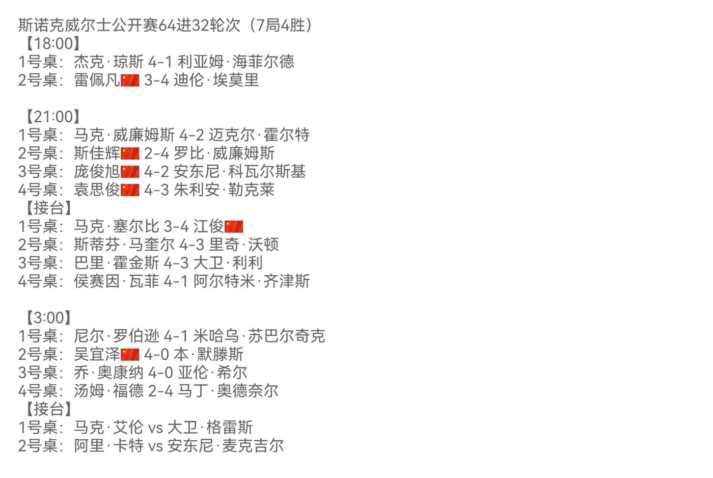 First of all, congratulations to the four national players who won and advanced to the last 32. Special praise goes to Jiang Jun, while Si Jiahui needs to reflect on his performance.