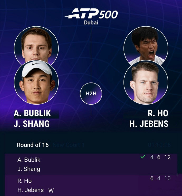 In the men’s doubles first round, the Chinese-Kazakh duo Shang Juncheng and Bublyk staged a thrilling comeback from 4-6, 6-4 to win 12-10 against He Chengrui and Jebens, reaching the quarterfinals. Around 6 PM Beijing time tonight, Xiao Shang will compete in his singles first round against Russian star Medvedev.