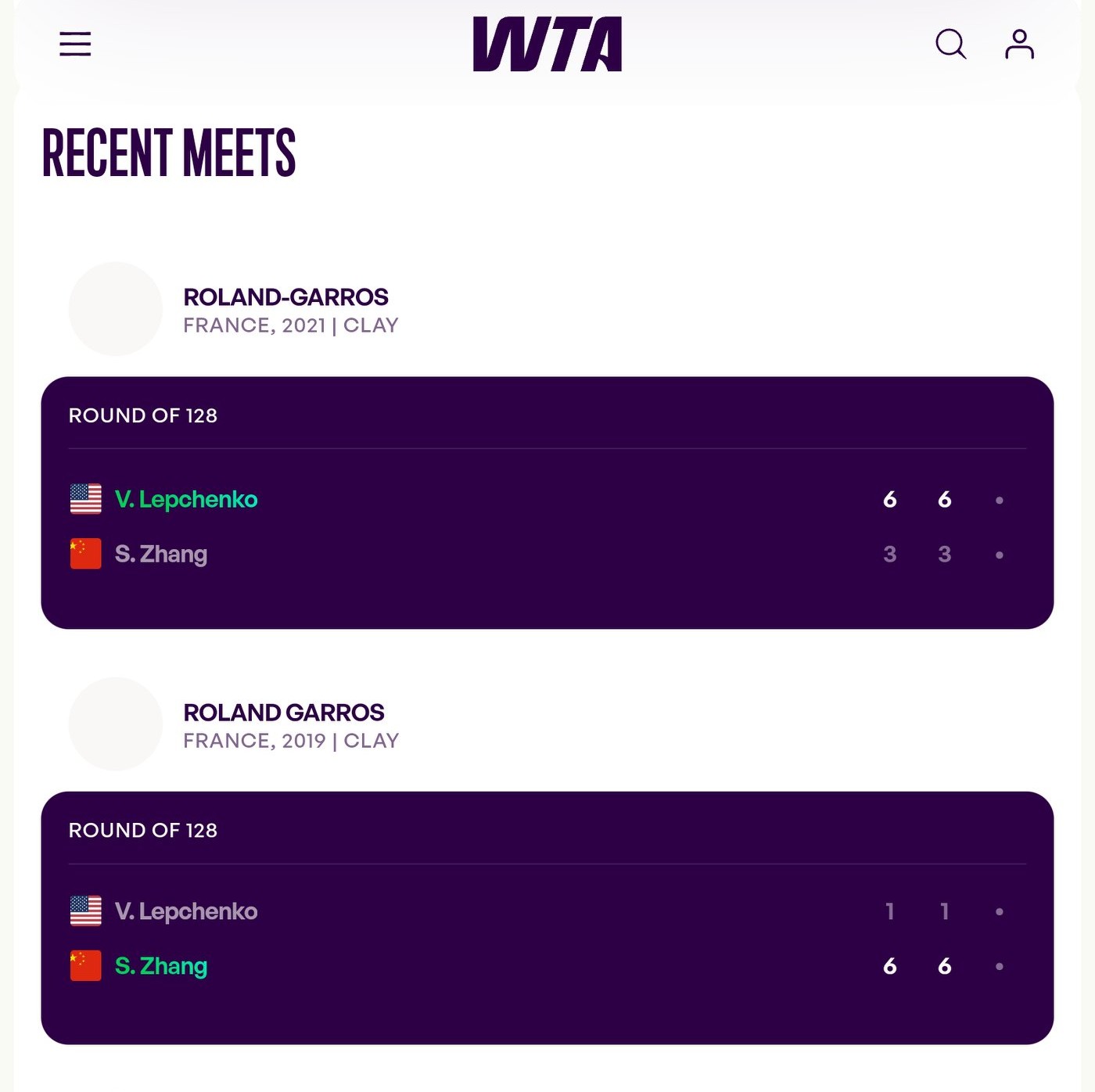 The last time these two faced each other was at the 2021 French Open, where Zhang Shuai lost 0-2 in the first round and was eliminated.