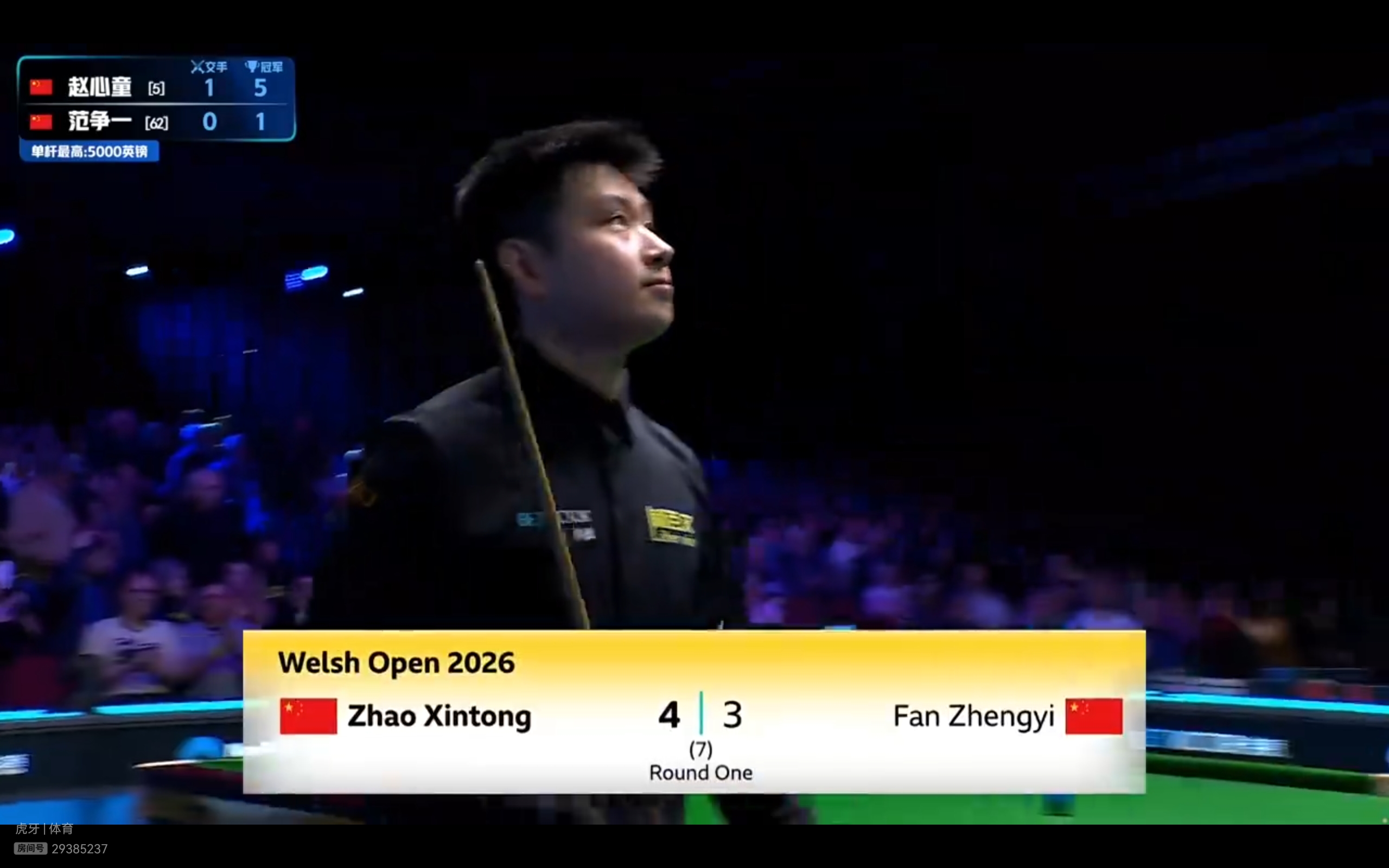 The latest report from the Snooker Welsh Open shows that Zhao Xintong overcame Fan Zhengyi 4-3 to move into the round of 32.