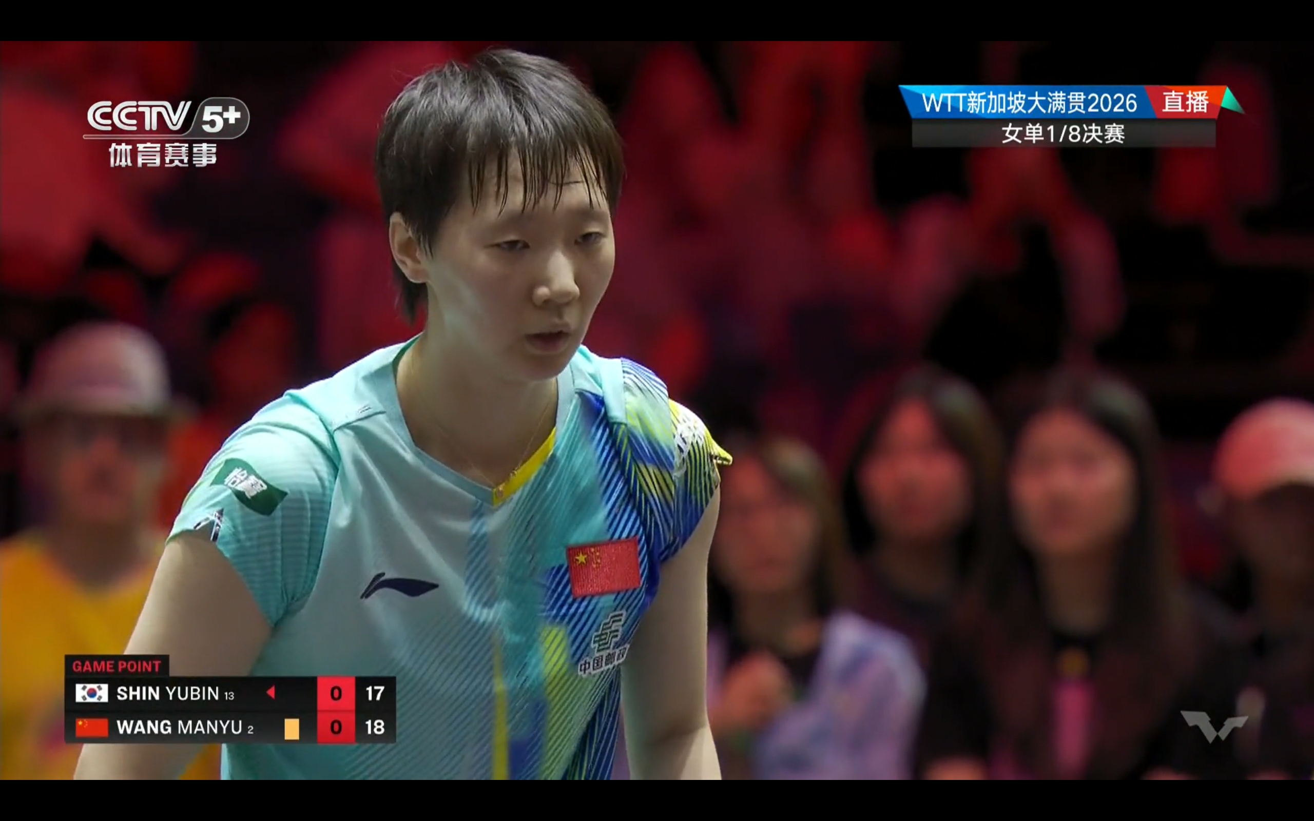 Wang Manyu defeated Shin Yu-bin 3-1 to advance to the women's singles quarterfinals.