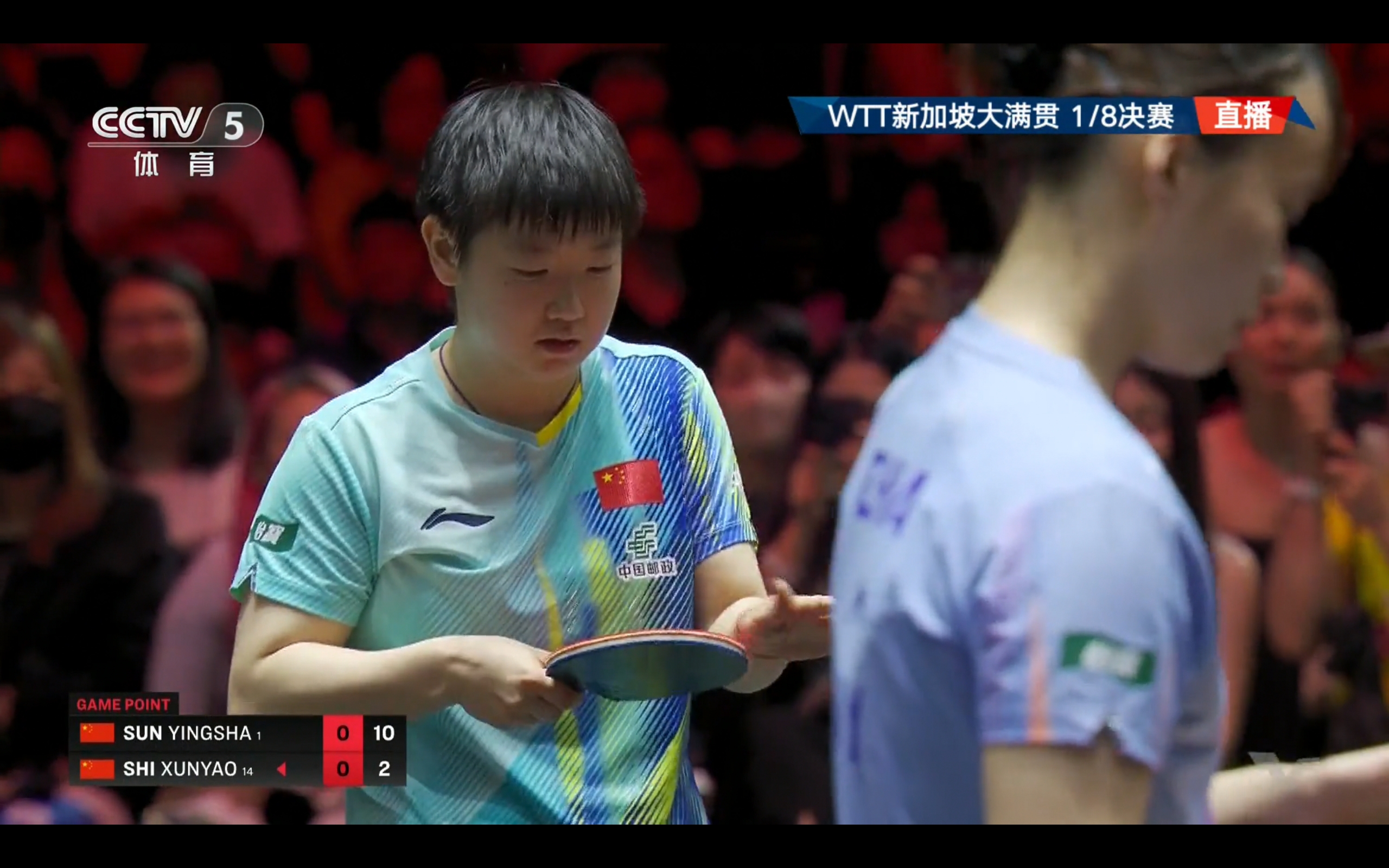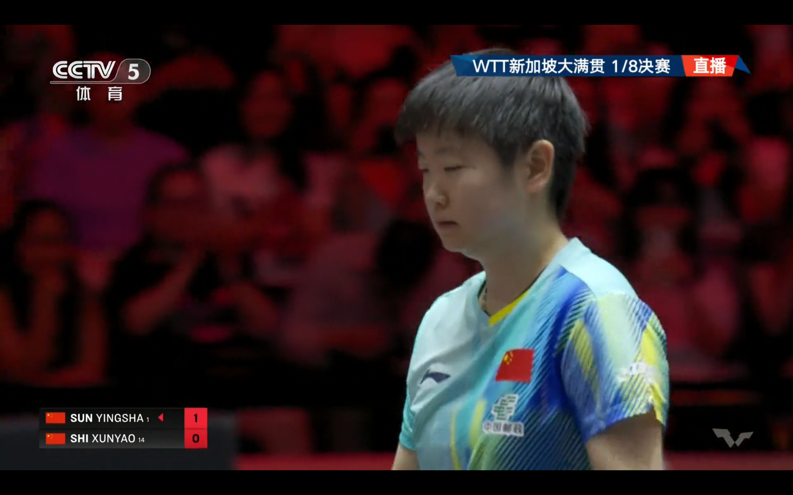 CCTV-5 is live broadcasting the WTT Singapore Smash round of 16 match: Sun Yingsha vs. Shi Xunyao.