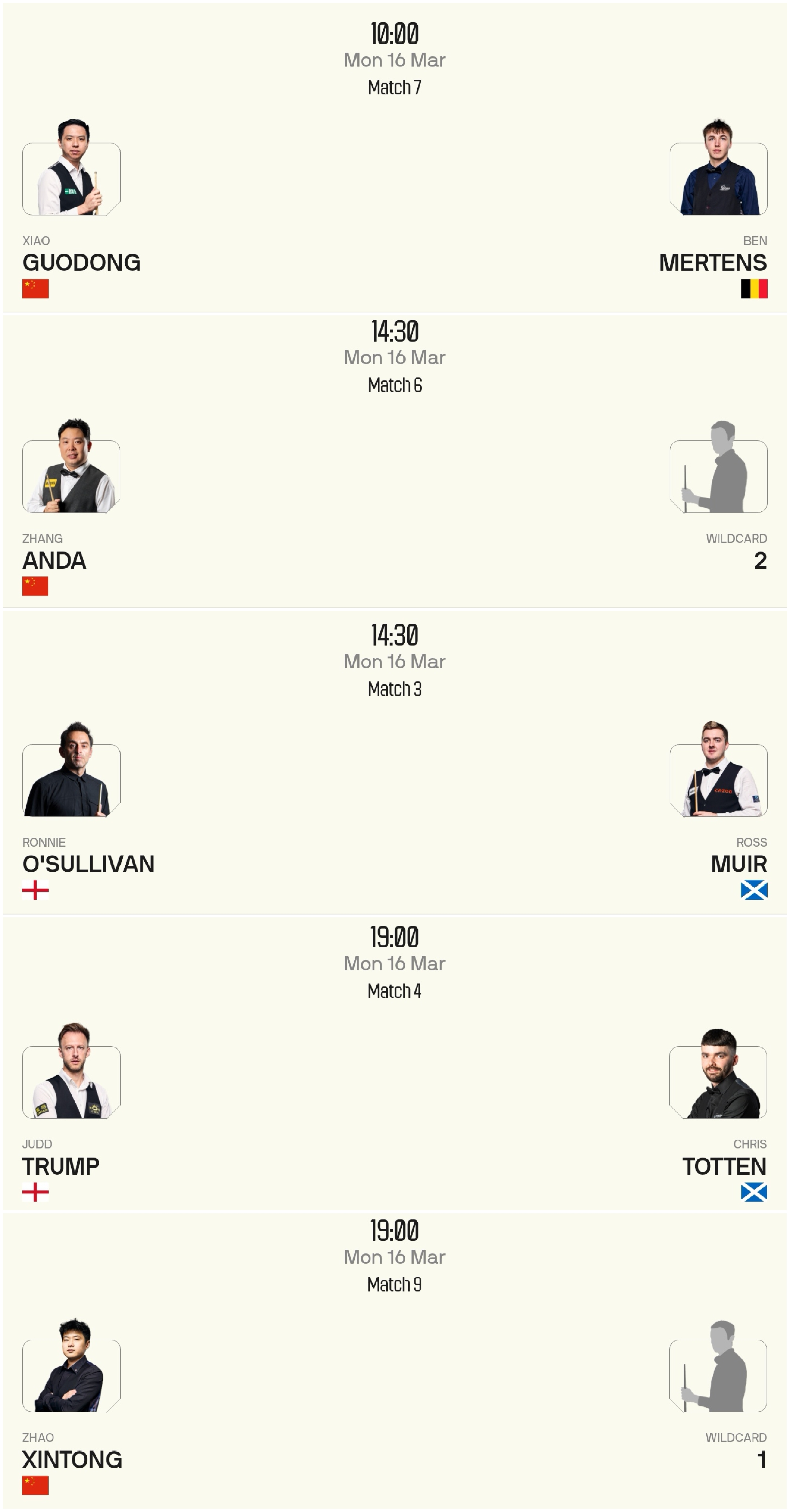At 7:00 PM, Judd Trump vs. Chris Wakelin.