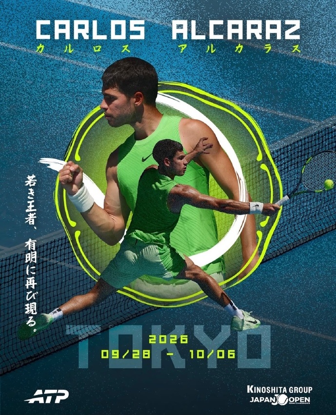 First, let's focus on a breaking update. Yesterday Beijing time, the organizers of the ATP 500 Tokyo tournament officially announced that world No. 1 Carlos Alcaraz has confirmed his participation in this year's event, returning to Japan to defend his title. This indirectly indicates that the Spanish star has withdrawn from the China Open and will not be coming to Beijing this year. This marks Alcaraz's second consecutive absence from the China Open since his 2024 victory in Beijing, opting instead for the Tokyo tournament held during the same period. Some fans speculate that this decision is likely due to a higher appearance fee offered by the Japanese side.