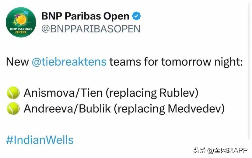 Medvedev and Rublev were originally scheduled to play in a mixed doubles exhibition this Tuesday in Indian Wells. With their arrival still uncertain, their spots have been taken by Lehečka and Bublič, partnering with Anisimova and Andreeva respectively. As seeds at the Indian Wells Masters, both have first‑round byes, which somewhat alleviates the immediate pressure; Medvedev’s and Rublev’s second‑round matches are set to take place later this weekend.