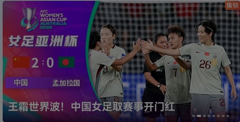 Latest Women's Asian Cup report: In the recently concluded group stage match, China opened with a 2-0 victory over Bangladesh. Also included is China's group stage schedule, broadcast live on CCTV-5.