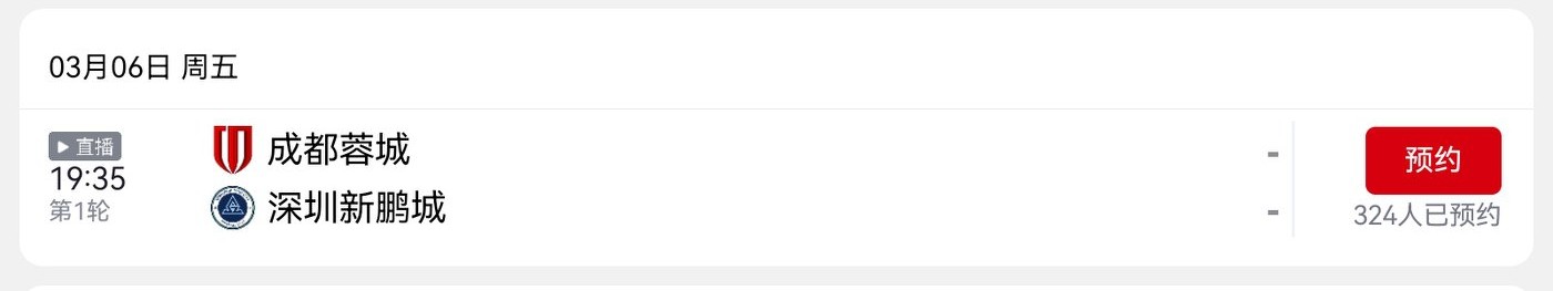 According to the schedule announced by the organizing committee, tomorrow's CSL opening ceremony and first match is: Chengdu Rongcheng vs Shenzhen Xinpengcheng. Everyone is welcome to tune in.