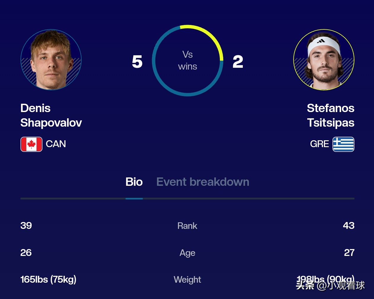 In the match, Shapovalov started with fierce intensity, comfortably taking the first set and breaking serve early in the second. Tsitsipas then demonstrated his champion's resilience, fighting back to level the match. In the deciding set, Shapovalov promptly regained his form, reasserted control, and ultimately sealed the victory.