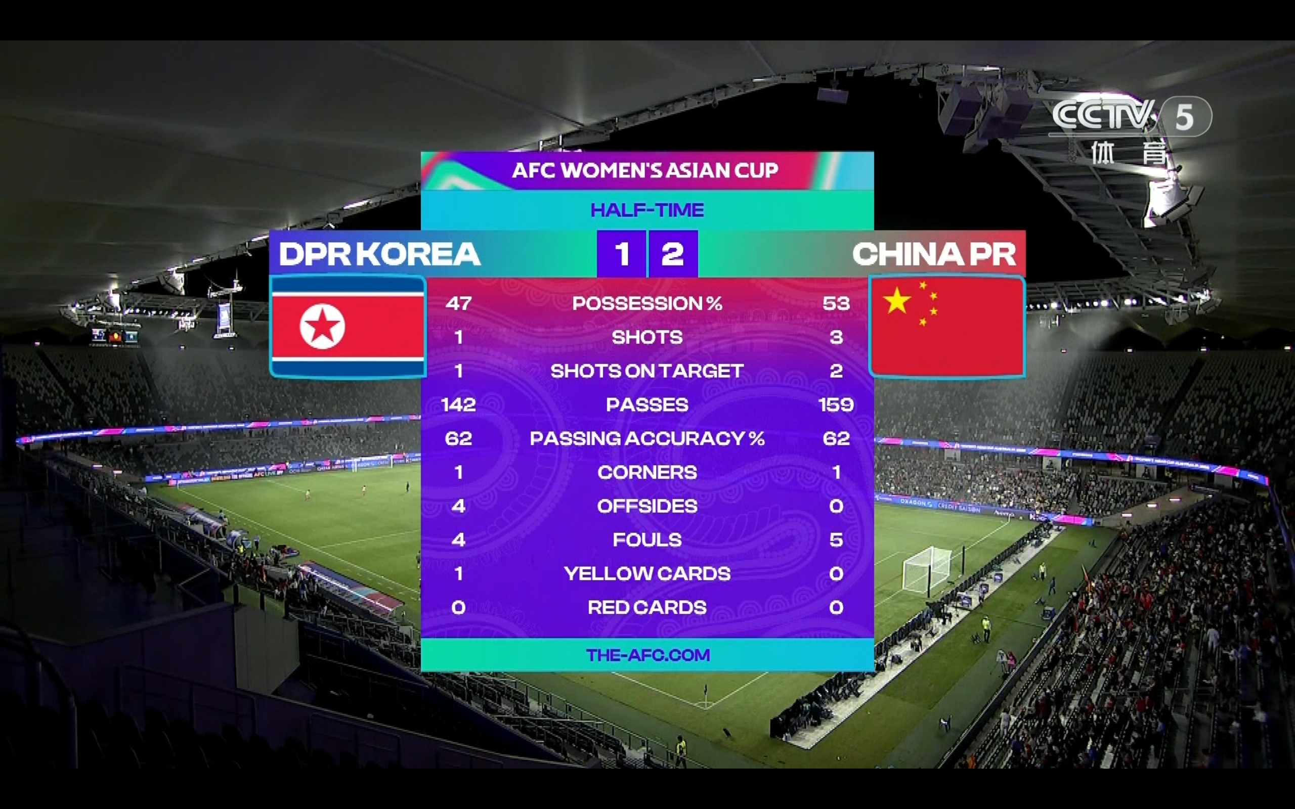 CCTV-5 is providing a free live broadcast of the Women's Asian Cup match between China and North Korea.