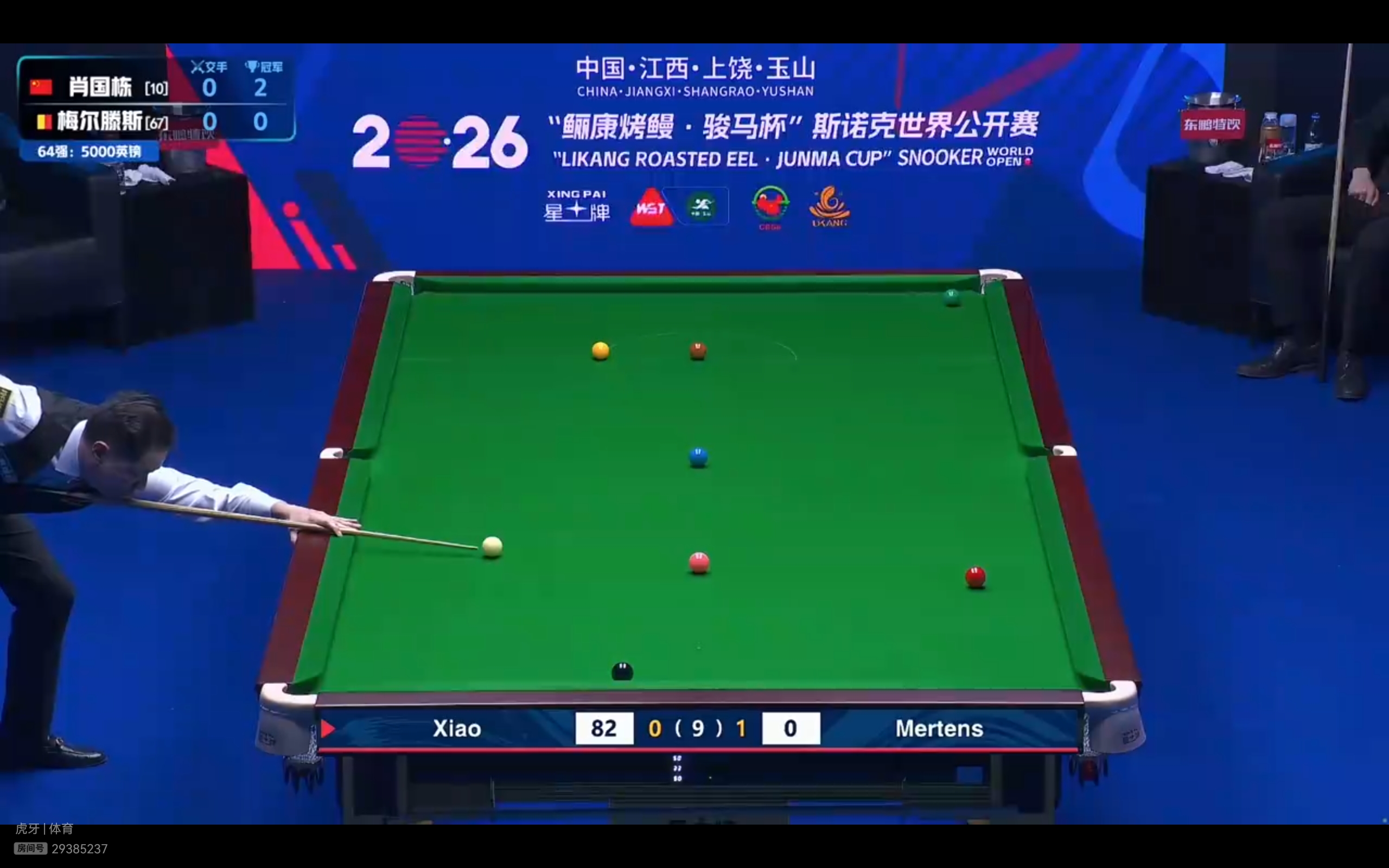 The CCTV Video and Huya live streaming platforms are providing free live coverage of the Snooker World Open match between Xiao Guodong and Mertens.