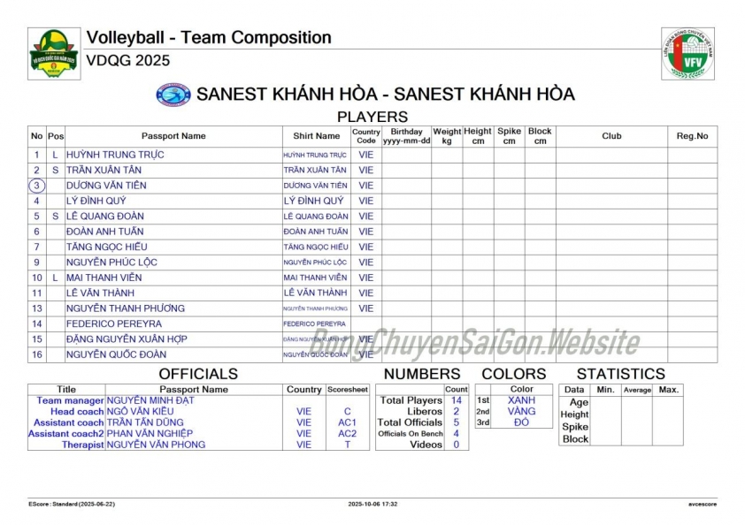Sanest Khánh Hòa player list for phase 2 of the 2025 National Volleyball Championship Photo: BCSG Thể Công Tân Cảng player list for phase 2 of the 2025 National Volleyball Championship Photo: BCSG