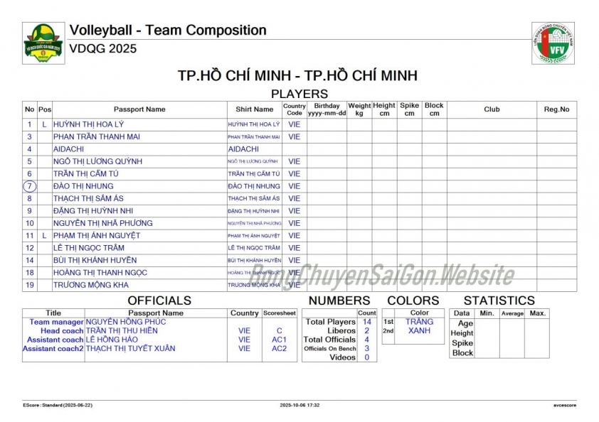 Photo: BCSGTPHCM player roster for the 2025 National Women's Volleyball Championship
