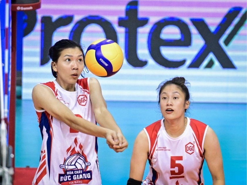 Middle blocker Trần Thị Bích Thủy (left) will go to Japan to compete after finishing the 2025 National Volleyball Championship.