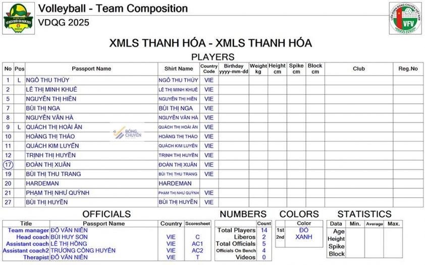 XMLS Thanh Hóa Women’s Volleyball Player List for the 2025 National Championship