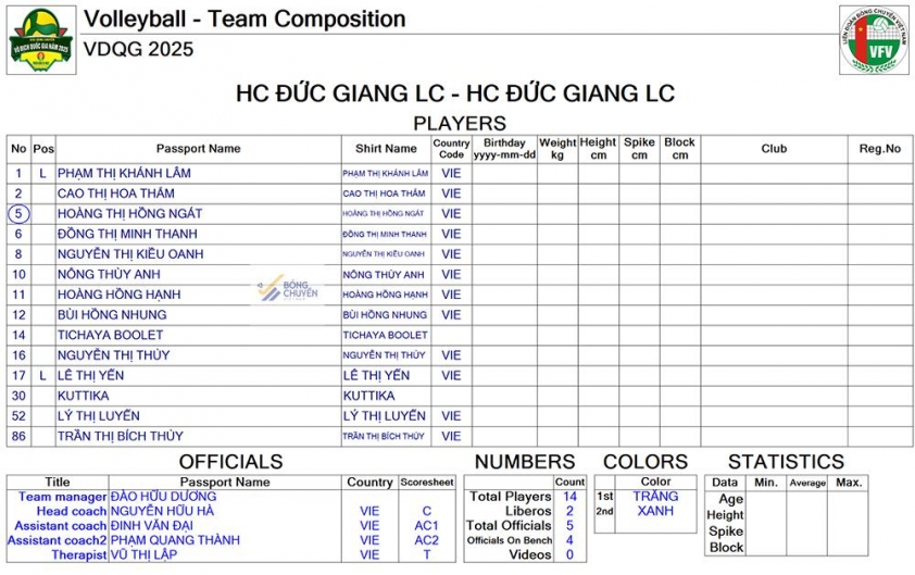 HCĐG Lào Cai Women’s Volleyball Player List for the 2025 National Championship