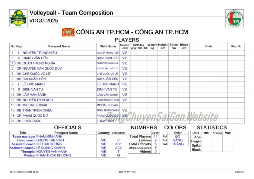 Photo: BCSGCông an TPHCM player list for the 2025 National Volleyball Championship