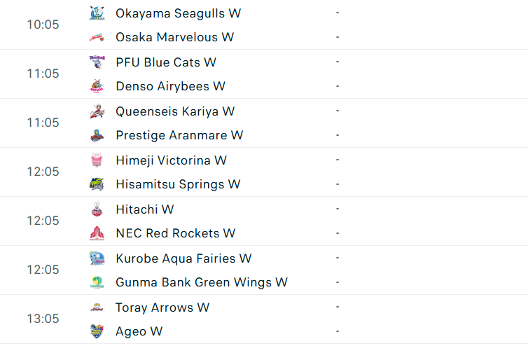 (Volleyball match schedule) - Updated volleyball fixtures for today 2/11 featuring Trần Thị Thanh Thúy and her teammates at Gunma Green Wings against the Kurobe AquaFairies.