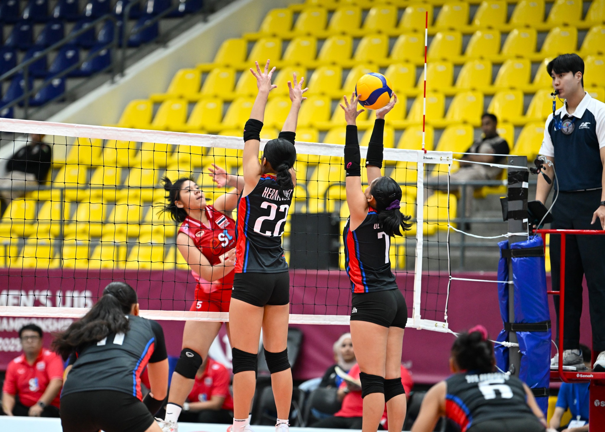 The Thailand U16 women's volleyball team (in red) was defeated 1-3 by the Philippines.