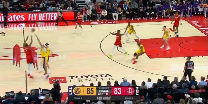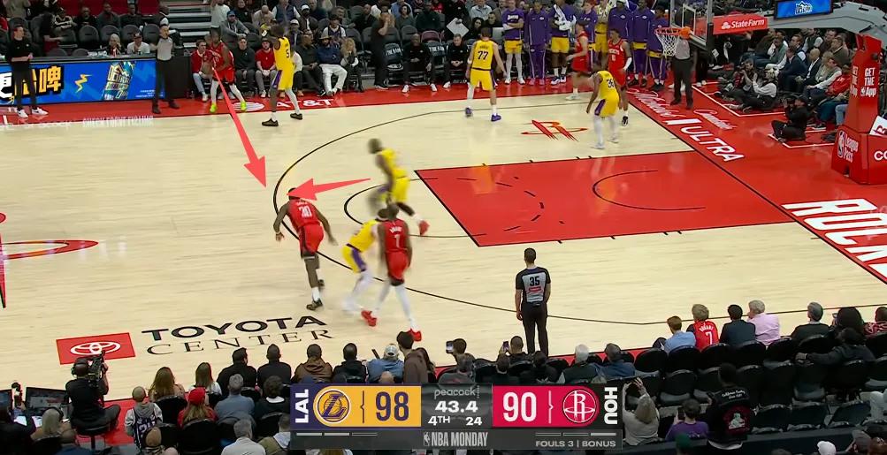 Durant scored 16 points on 7-of-11 shooting in the first half, finishing with 18 points on 8-of-16 for the entire game—his only second-half contribution being a late, inconsequential layup. From the moment Durant received the ball, the Lakers deployed double-teams, even extending pressure near the midcourt, forcing him to pass and making other Rockets players solve the offensive challenges.
