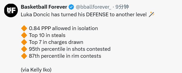 What Redick has done is use system to compensate for lack of innate talent. The Lakers' defense heavily relies on: zone defense (usage frequency ranks 4th in the league), extensive switching (2nd in the league). Strong coordinated defense, trapping, and shrinking the paint. And Doncic fits perfectly into this system: his ability to disrupt shots is his biggest highlight. His shot contests per 100 possessions rank above 95% of league players, interior contests above the top 87%. Especially in isolation defense, opponents trying to target him face great difficulty:This season, in 109 isolation situations, he allows only 0.844 points per possession, outperforming Amen Thompson, Jaden McDaniels, and OG Anunoby.