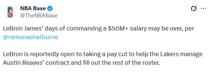 On March 24, ESPN reporter Shelburne reported that James' days of earning over $50 million annually may be over. The report stated James is willing to accept a salary reduction to help the Lakers handle Reaves' contract extension and create salary cap space for roster filling.