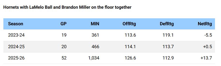 Health is a core factor. Ball has played 63 games this season, averaging only 35 games per season over the past three years. His playing time alongside Brandon Miller this season has already exceeded Miller's total from his first two career seasons.