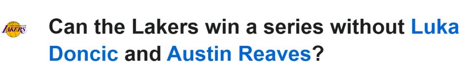 "I really want to see LeBron deliver a peak-level series," another Western executive said. "But I worry that even teams qualifying via the play-in would perform better against the Thunder and Spurs than the Lakers, missing Reaves and Doncic, would against the Rockets."