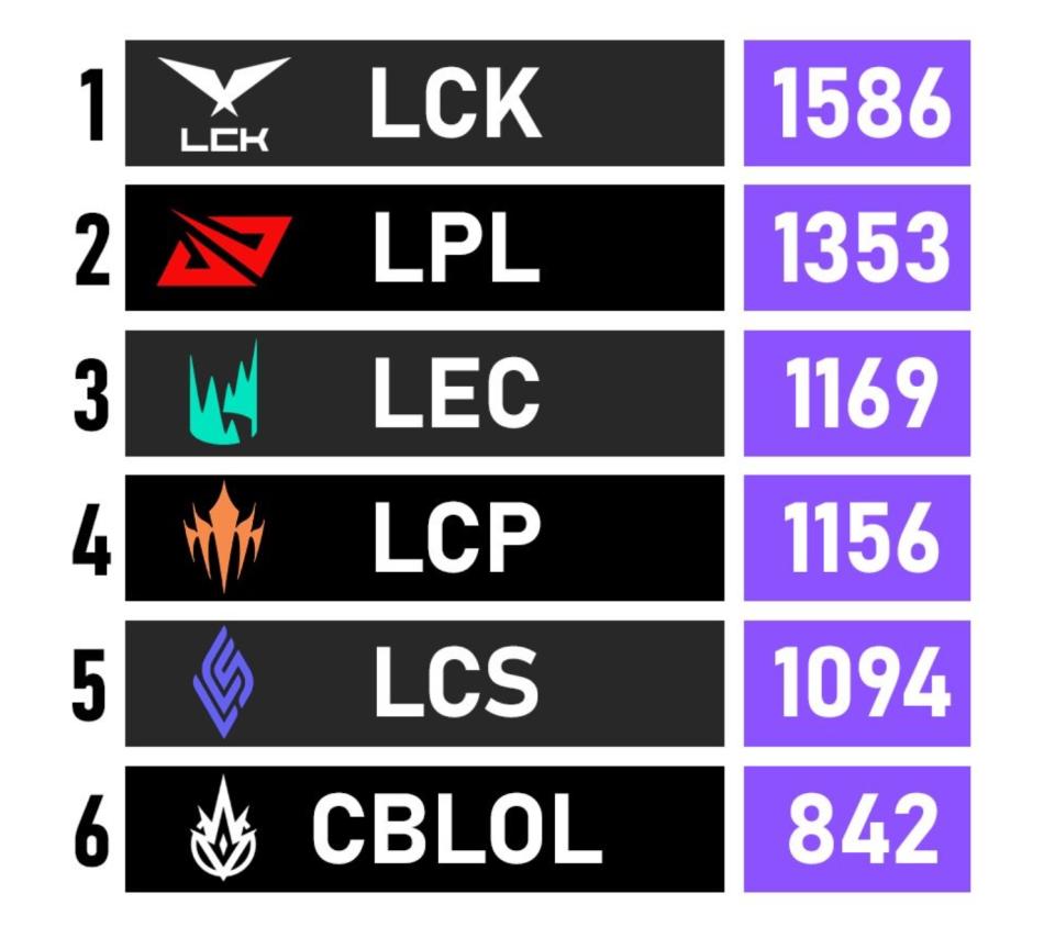 In recent LOL team power rankings, global rankings have consistently been dominated by LCK. Before the Pioneer Tournament began, the LCK region ranked first with 1586 power, while LPL ranked second with 1353. Power rankings are based on team achievements and overall regional strength. Even though HLE was eliminated early in this year's LCK top 10 qualifiers, they still rank in the top three due to accumulated points from past performances! Recalling past BO5 clashes between LPL and LCK, we cannot forget the Pioneer Tournament's "turret" story, nor T1's repeated dominance and pressure. From RNG's multiple setbacks, to LNG's loyalty tale, to Top Esports' repeated falls, we have seen enough of these BO5 defeat stories! Now, looking back at Bin's statement "For international battles, look to BLG," it seems indeed meaningful!