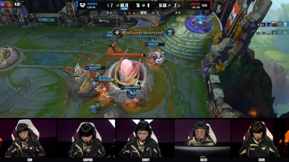 It seems Tabe was somewhat helpless too. Previously, teams he coached like RNG, BLG, and AL had explosive potential, but this JDG squad, aside from Xiaoxu occasionally shining, lacks explosive points—at least against GEN, they couldn't erupt. The mid-jungle duo couldn't withstand the pressure at all, which might just be the hard skill gap. This is Chovy's era! Hopefully, BLG can step up, counterbalance GEN, and give us some hope!