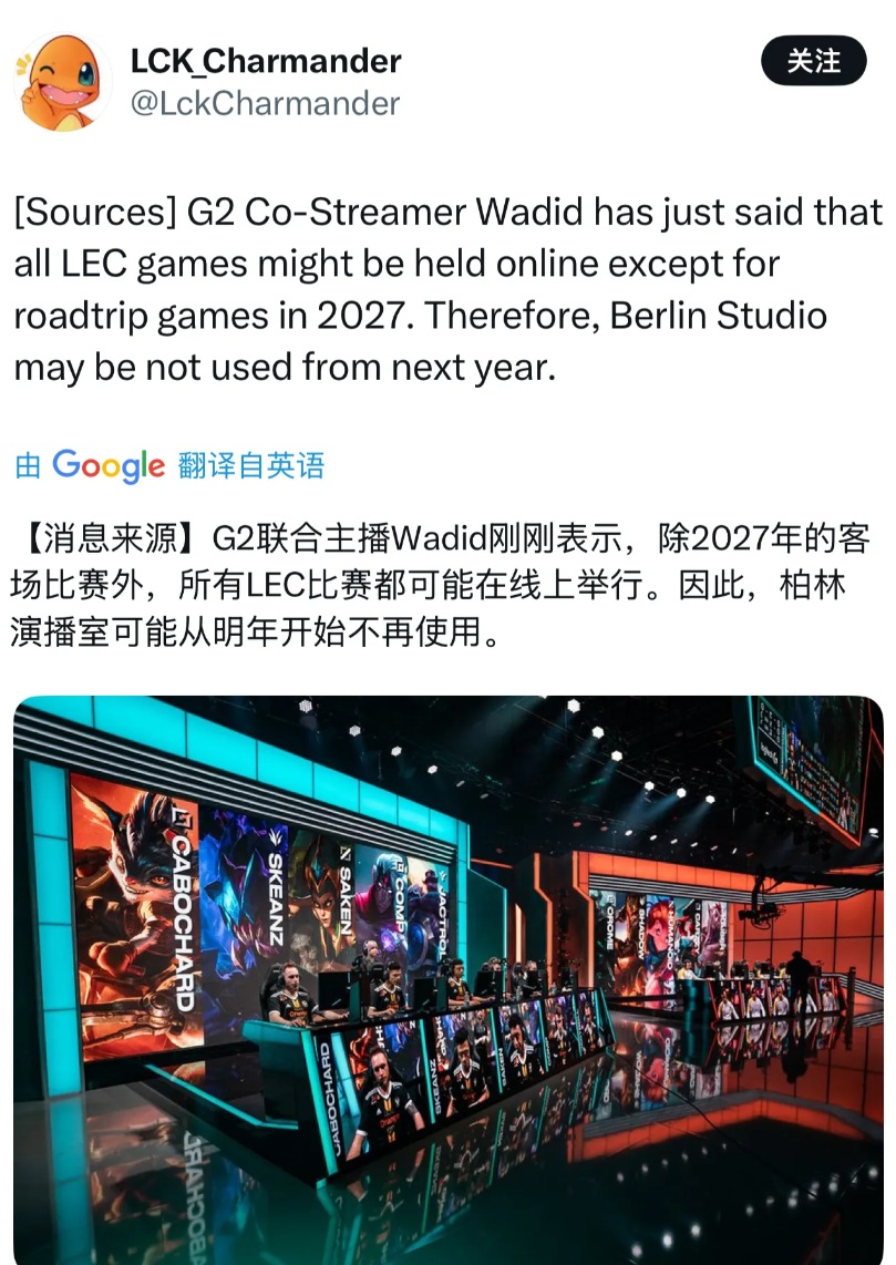 LPL lacks fresh talent, and European/American regions are even worse. Today, LEC also received bad news: joint streamer Wadid revealed that next year most LEC matches will shift to online format, and studios may no longer be used.