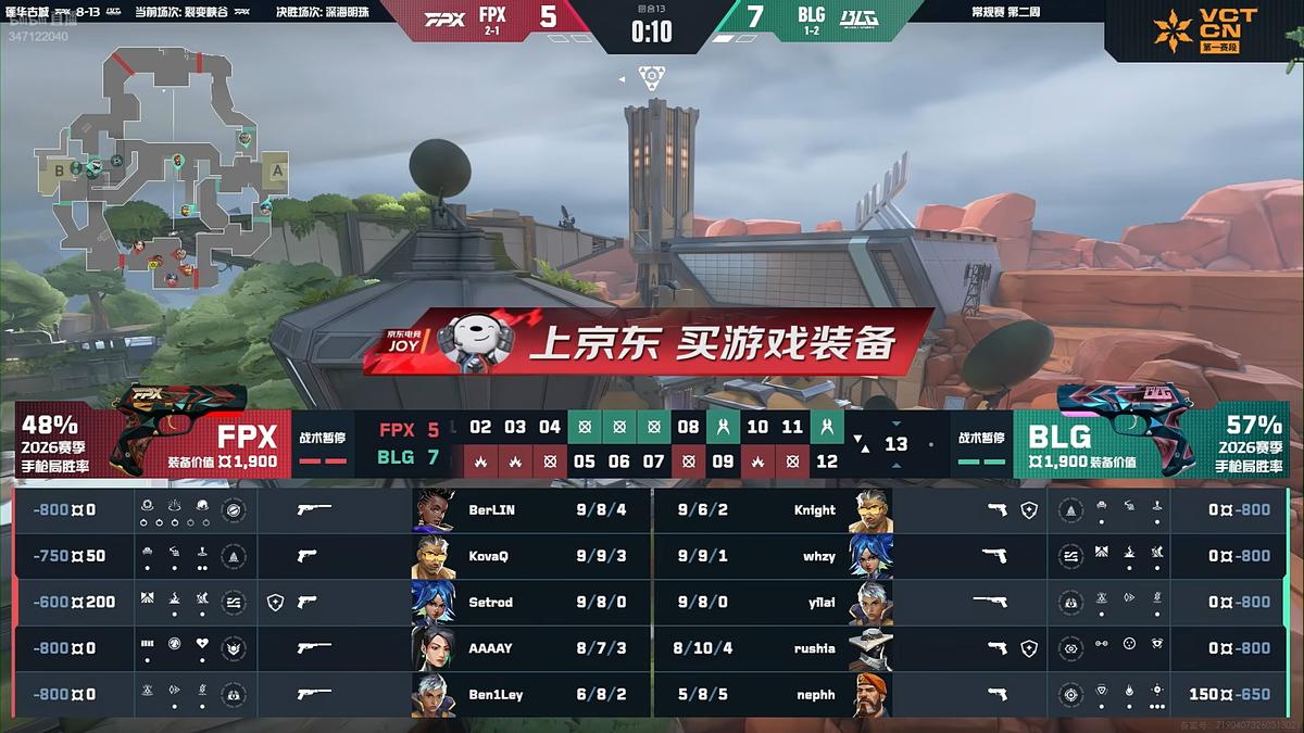 Round nine, FPX successfully defused the Spike to reclaim a point. Round ten, with BLG having a numerical advantage, BerLIN opted to save his weapon, allowing BLG to take another point. Round eleven, yilai's triple kill widened the score gap to three points.