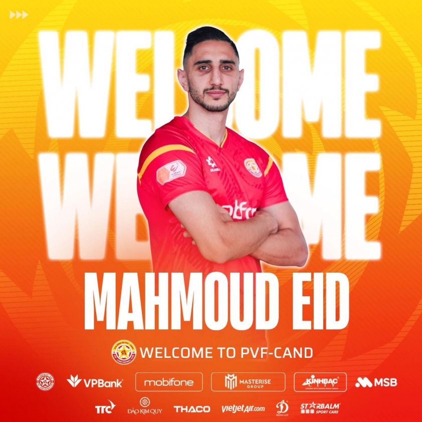PVF-CAND club has officially announced the signing of forward Mahmoud Eid, a former striker of Nam Dinh, in an effort to bolster the squad for the relegation race in the V.League 2025/26. The arrival of the Palestinian national team player is expected to bring a fresh impetus to the attacking line of the police-affiliated club during the decisive phase of the season.